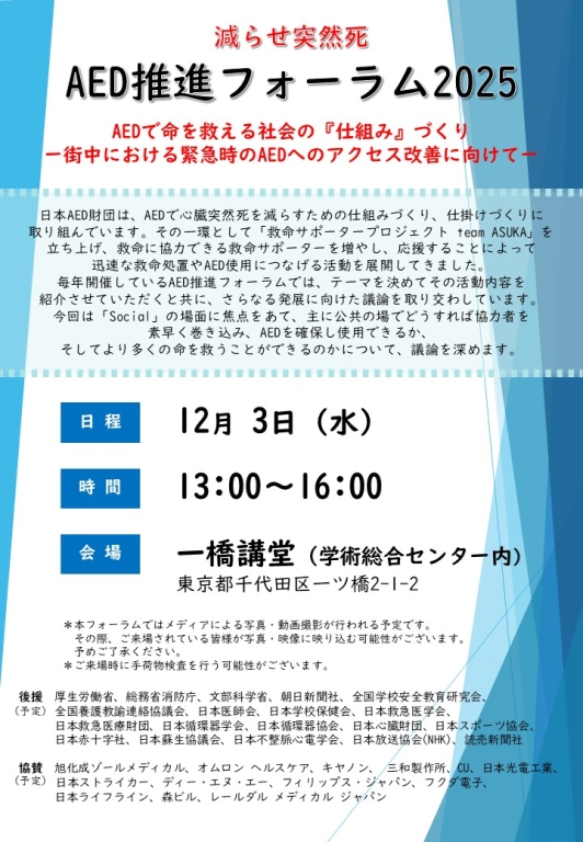 減らせ突然死 AED推進フォーラム2025を開催いたします